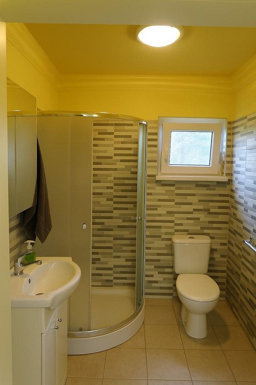 Ohřev vody je zajištěn el. bojlerem, vytápění elektrickými stropními topnými panely.
